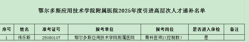 鄂尔多斯应用技术学院附属医院关于2025年度引进高层次人才体检考察递补的公告